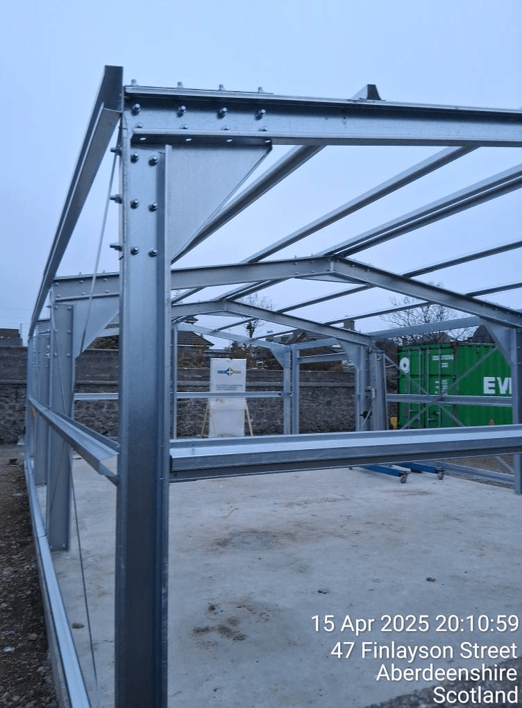 We worked with Grampian Steel and Baxters Design Architects to design our new building and planning permission was granted in July 2024 for a 10m x 6m all purpose shed to be built at the back of our property.