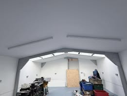 Once the main structure of the shed was built – the inside needed first fix electrics, insulating, plaster board, protective thistle boards to the main walls, painting and finally the electricians – Ace electrical then finished the wiring and heat detection work and we are now good to go!